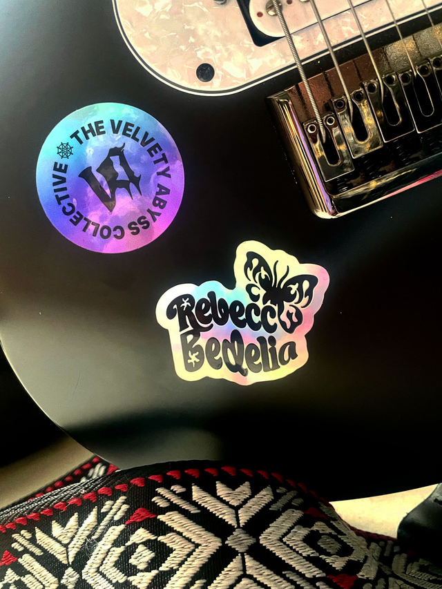 Un sticker holographique qui porte fièrement l’identité de Rebecca Bedelia, entre pop culture, metal et inspirations graphiques décalées. Avec ses reflets irisés, il devient un petit manifeste visuel, fun et audacieux.