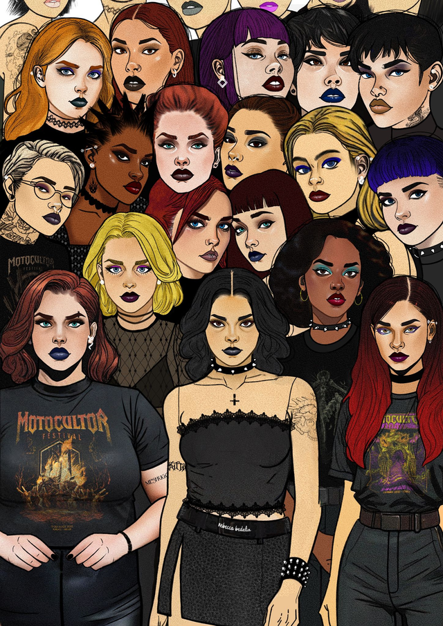 "Sororité Métallique" célèbre la diversité et la force des femmes dans les festivals underground. Chaque personnage incarne une facette différente de cette sororité et solidarité féminine dans le monde du metal.